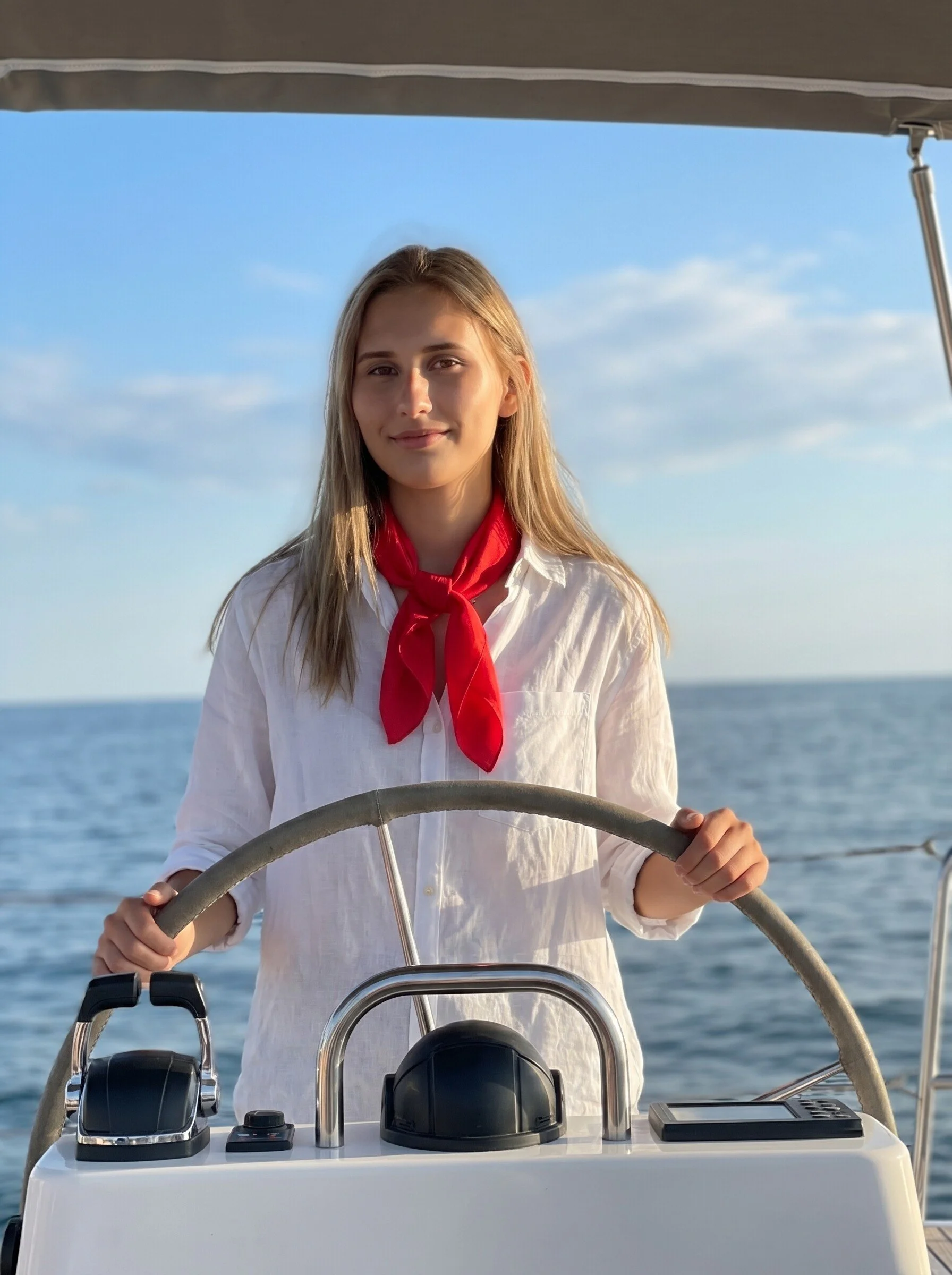 Abbiamo trasformato questa idea in un filtro AI a tema nautico, costruendo un immaginario visivo coerente: il timone come elemento centrale, simbolo di direzione e leadership, accompagnato da dettagli come foulard nei colori del brand, integrati nell’immagine per rafforzare l’identità visiva.