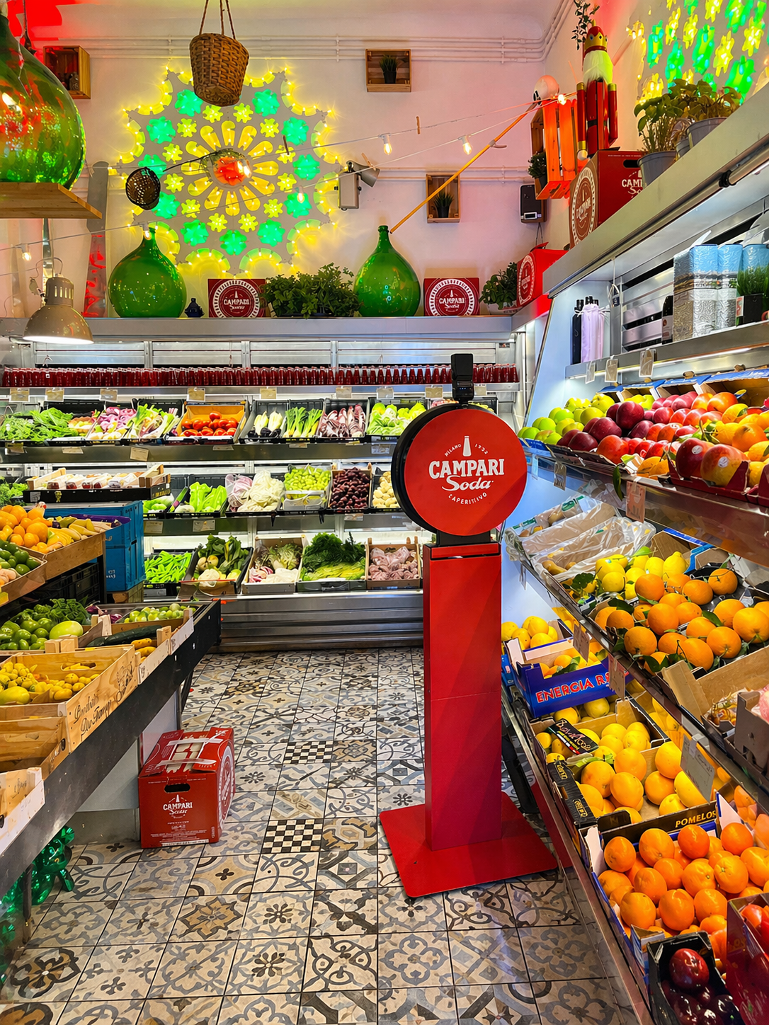 Ogni installazione è stata progettata su misura: totem personalizzati, grafiche custom, interfacce digitali dedicate e stampe brandizzate pensate per riflettere l’identità urban, young e contemporanea di Campari.