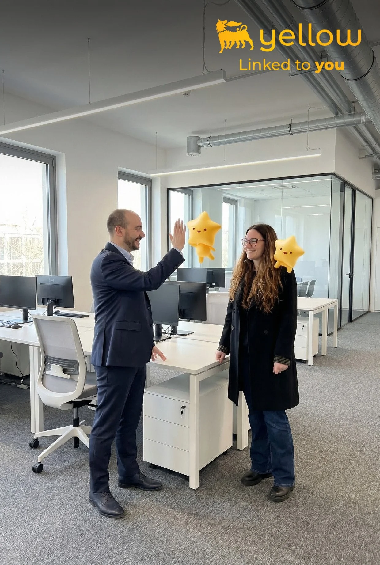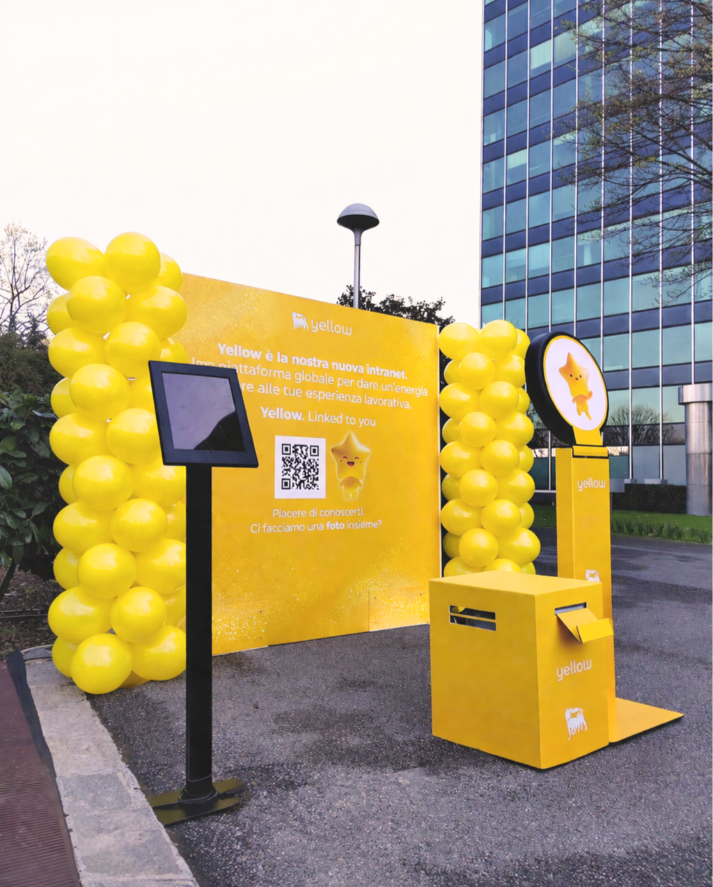 Accanto all’attivazione digitale globale, Say Cheese ha realizzato anche una seconda esperienza fisica per Eni Yellow, installando due Photo Booth aziendali all’interno degli uffici Eni di Milano e Roma. Anche questa attivazione è stata sviluppata in occasione del lancio della nuova intranet, con l’obiettivo di creare un momento di partecipazione e intrattenimento direttamente nelle sedi aziendali.